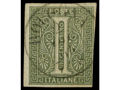 ° ITALIA. Sa. L-14c. 1863. 1 cto. verde SIN DENTAR, mat. FECHADOR de BOLOGNA, margen derecho algo corto en la parte inferior. Cert. A. DIENA.