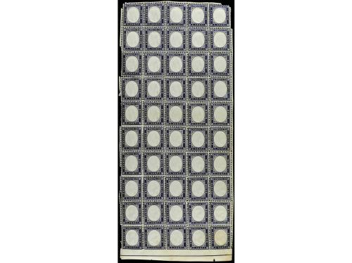 **/* ITALIA. Sa. 2. 1862. 20 cts. azul índigo. Hoja completa de 50 sellos, un sello defecto y ligeramente tonalizada en la parte inferior.