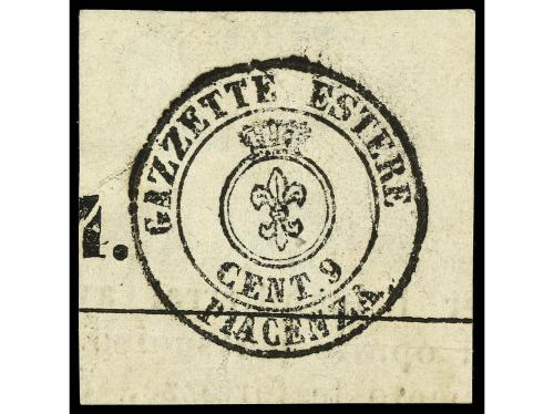 Δ ITALIA ANTIGUOS ESTADOS: PARMA. Yv. B-2. 1852. Fragmento de sello de Tasas de Piacenza de 9 cents. Muy bonito.
