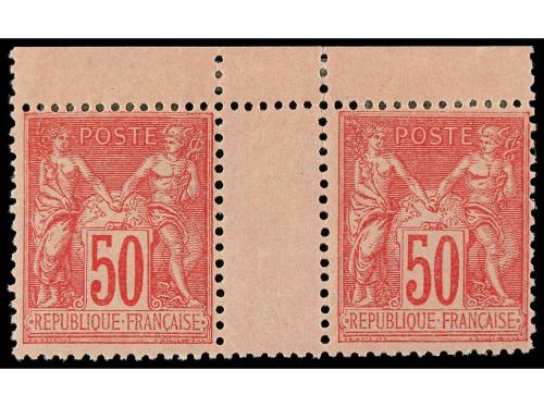 * FRANCIA. Yv. 98. 1884-90. 50 cts. rosa. Pareja con interpanel central. PRECIOSA. Cat. +180€.