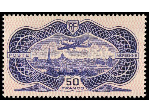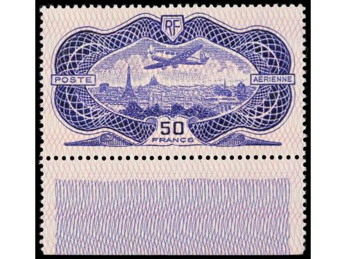 * FRANCIA. Yv. Av. 15. Avión sobre París. 50 f. borde de hoja. LUJO. Cat. 800€.