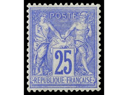 * FRANCIA. Yv. 78. 25 cts. ultramar, tipo II. Pliegue de goma natural. LUJO. Firmado BRUN. Cat. 650€.