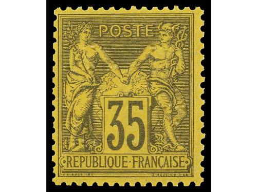 ** FRANCIA. Yv. 93. 35 cts. violeta negro s. amarillo. Muy bonito. Raro sin fijasellos. Cat. +800€.