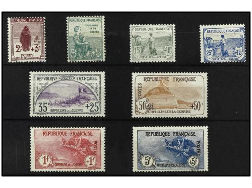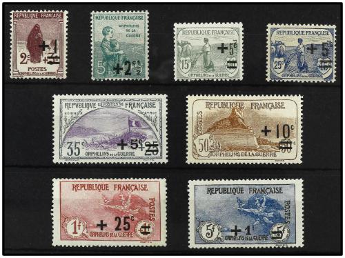 ** FRANCIA. Yv. 162/9. SERIE COMPLETA. 8 valores. 25 cts. sobre 1 + 1 f. goma no original. Centrados de lujo. Cat. +500€.