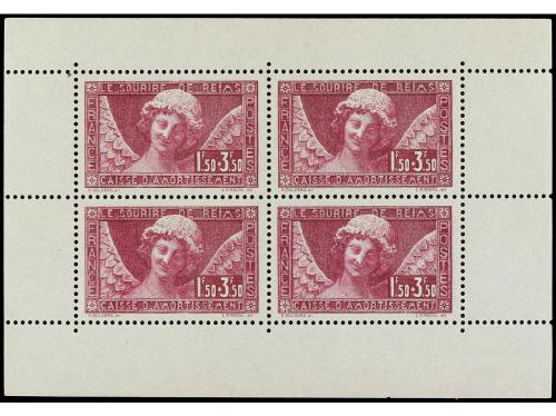 ** FRANCIA. Yv. 256 (4). 1,50 fr. + 3,50 fr. Bloque de cuatro. LUJO. Cat. 640€.