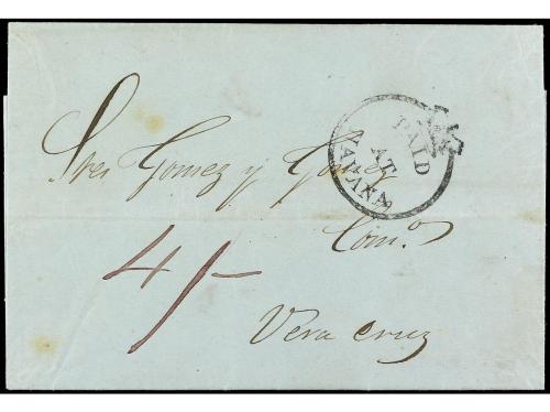 ✉ COLONIAS INGLESAS. 1847. HABANA (Cuba) a VERACRUZ. Carta completa con texto, marca PAID/AT/HAVANA tipo CC1b en negro, tarifa manuscrita "4/-" al dorso fechador de doble círculo.