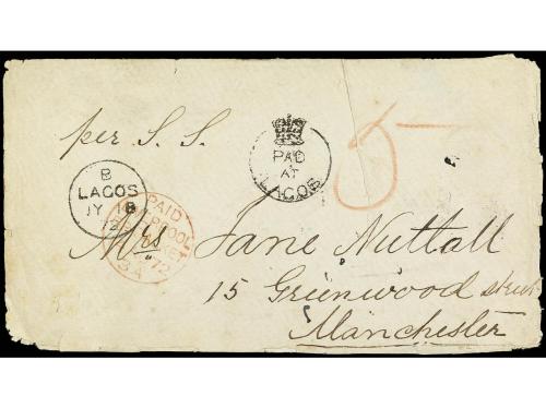 ✉ COLONIAS INGLESAS. 1865. BAHAMAS a GLASGOW (Escocia). Sobre circulado con la marca PAID/AT/BAHAMAS en rojo, al dorso llegada.