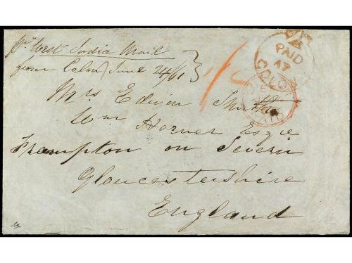 ✉ COLONIAS INGLESAS. 1861. CAIRO a U.S.A. Sobre circulado con la marca PAID/AT/CAIRO en negro y tarifa manuscrita "1/8", tasada a la llegada con 5 cents. Roturas en el frente del sobre. MUY RARA.