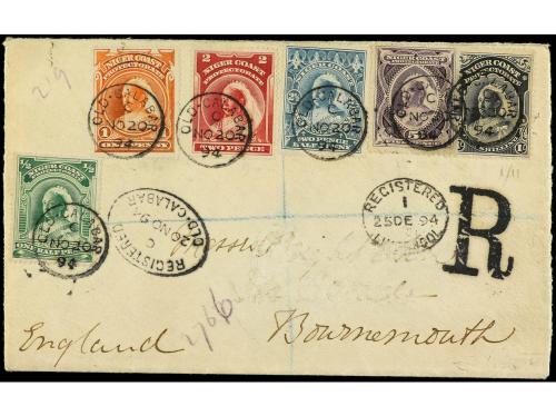 ✉ COSTA DE NIGER. Ed. 20/5. 1896. SERIE COMPLETA mat. REGISTERED / OLD CALABAR en sobre a Londres.