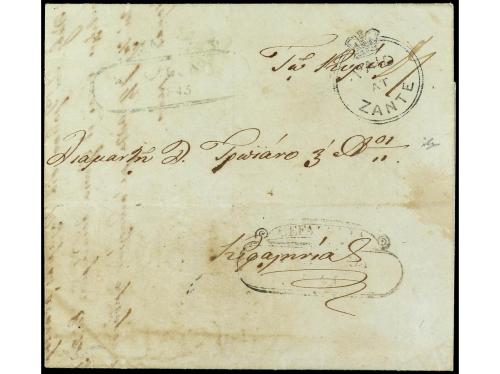 COLONIAS INGLESAS. 1845. ZANTE (Ionian Islands) a CEFALONIA. Carta completa con texto, marca PAID/AT/ZANTE en negro. Muy rara estampación en este color. Muy bonita.
