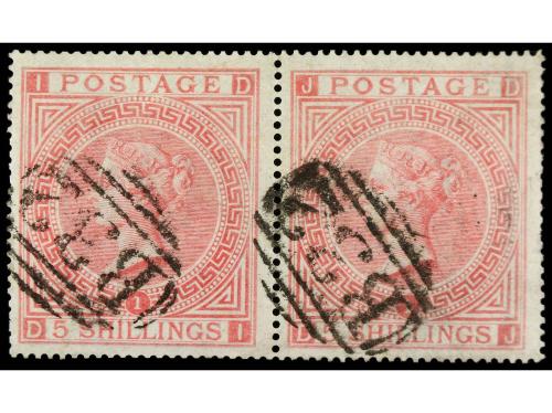 º ARGENTINA. 5 sh. rosa. Pareja, mat. B-32 de la B.P.O. de BUENOS AIRES . PRECIOSO y MUY RARO múltiple (+ 1.000 £.) .
