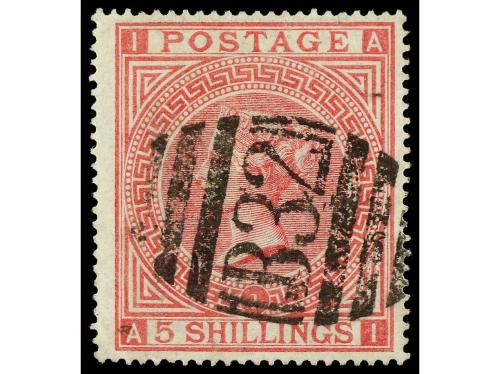 º ARGENTINA. 5 sh. rosa, mat. B-32 de la B.P.O. de BUENOS AIRES. PRECIOSO (SG. Z28, 500 £).
