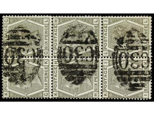 º CHILE. 6 d. gris. Bloque de seis, mat. C-30 de la B.P.O. de VALPARAÍSO. PRECIOSO y RARO múltiple (SG. Z75, +300 £).