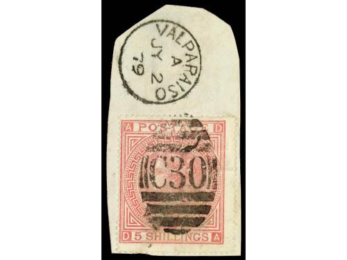 Δ CHILE. 5 sh. rosa sobre fragmento, mat. C-30 de la B.P.O. de VALPARAÍSO. PRECIOSO. (Z88, 400 £).