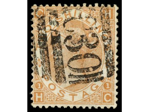 º COLOMBIA. 1 sh. castaño, mat C-65 de la B.P.O. de CARTAGENA (Error en el mat. "65" en vez de "56"). PRECIOSO y MUY RARO (SG Z41 sin precio).