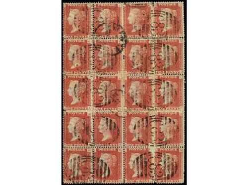 º BRASIL. 1 d. rojo. Bloque de 20 sellos, mat. C-83 de la B.P.O de RIO DE JANEIRO. ESPECTACULAR y MUY RARO (SG. Z41, +900 £).