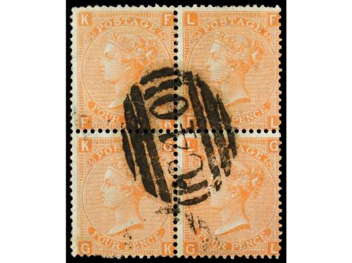 º CHILE. 4 d. naranja. Bloque de cuatro, mat. C-40 de la B.P.O. de COQUIMBO (SG. Z34, +360 £).