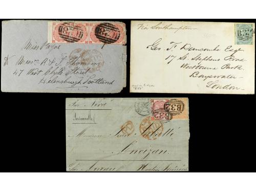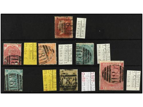 º BRASIL. 1865-80. Conjunto de sellos británicos con matasellos C-83 de la B.P.O. de RIO DE JANEIRO (SG. + 1.020 £).