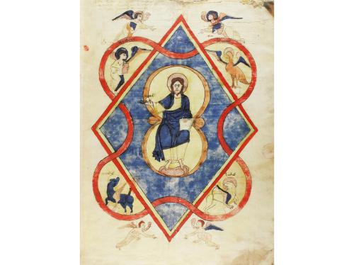 1998. LIBRO. (FACSÍMIL). EL BEATO DE LIÉBANA. CÓDICE DEL MONASTERIO CISTERCIENSE DE SAN ANDRES DE ARROYO. Barcelona: Ed. Moleiro, 1998. Folio imperial. Aprox. 166 fol. iluminados. Enc. plena piel, nervios. Presentado en un estuche del mismo material con ruedas en los planos. Escrito en letra gótica carolingia entre 1219 y 1235 para Fernando III el Santo, único ejemplo en combinación de elementos arcaicos y tardíos del medievo. Las similitudes estilísticas con el Beatus de Cardeña hace pensar que quizás fue ilustrado en el Monasterio de San Pedro de Cardeña. Incluye libro de estudio en folio mayor; 385 p. A cargo de Vivancos, Ocón, Verdis y Miranda. Enc. tela con sobrecubierta. Edición numerada y limitada a 987 ejemplares, con acta notarial. Con el libro de estudio.