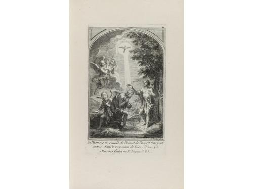 1750 ca. GRABADO. [LE NOUVEAU TESTAMENT]. Paris: Chez Tardieu, s.a. 8º mayor. Contiene 140 grabados sobre el Nuevo Testamento, todos realizados por Tardieu. Enc. posterior en plena piel, hilos dorados, nervios, lomera cuajada, cantos y cejas, cortes pintados.