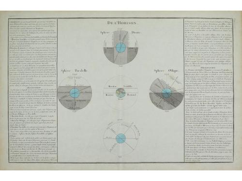 1761. GRABADO. (COSMOLOGÍA). [ATLAS METHODIQUE ET ELEMENTAIRE DE GEOGRAPHIE ET D'HISTOIRE...]. Presentamos 4 grabados pertenecientes al atlas de Mornas. Todos sobre papel de época ligeramente azulado. Los grabados son: de Planèttes eb Particulier; Póles du Monde, de l'Eclyptique, et de l'Horison...; Des Planètes Subalternes et de la Paralaxe; De l'Horixon. Todos con texto en plancha.