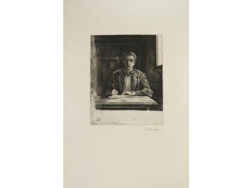 1960 ca. GRABADO. RETRATO DE UN ESCRITOR. Huella 25 x 20 cm, papel 53,5 x 39,5 cm. Grabado al aguafuerte numerado y firmado a lápiz por el autor, 10/14. El artista tiene obra en el MCBA.