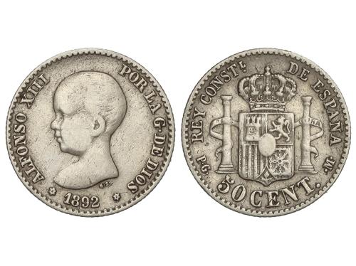 ALFONSO XIII. 50 Céntimos. 1896 (*9-6). P.G.-V. (Leves rayitas en anverso). AC-44. MBC+.