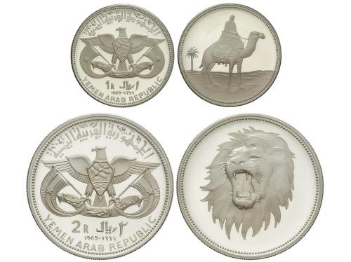 YEMEN. Lote 2 monedas 1 y 2 Riyals. 1969. AR. Qadhi memorial. Tirada máxima: 3.200 piezas. León. Tirada máxima: 4.200 piezas. KM-1, 4. PROOF.