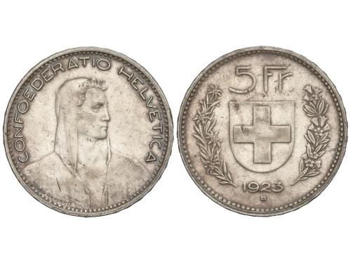 SUIZA. 5 Francs. 1923-B. BERNA. 24,93 grs. AR. William Tell. KM-38. MBC+.