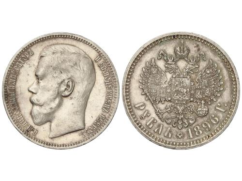 RUSIA. 1 Rouble. 1896. NICHOLAS II. SAINT PETERSBURG. 19,93 grs. AR. (Golpecitos). Pátina. KM-Y59.3. EBC-.