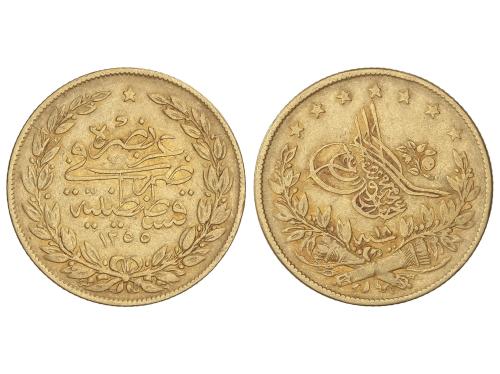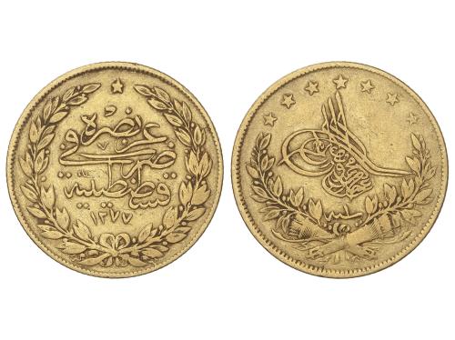 TURQUÍA. 100 Kurush. 1277/1 a.H - 1861 d.C. ABDUL AZIZ. 7,11 grs. AU. (Pequeños golpecitos). Fr-127; KM-696. MBC-.