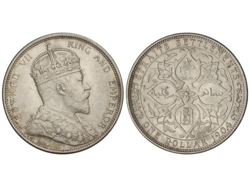 STRAITS SETTLEMENTS. 1 Dollar. 1904. EDWARD VII. 26,89 grs. AR. (Leves rayitas). KM-25. EBC-.