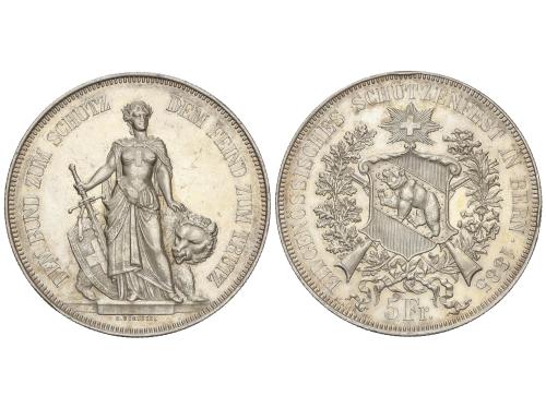 SUIZA. 5 Francs. 1885. FESTIVAL DE TIRO. BERN. 24,90 grs. AR. (Pequeños golpecitos). KM-X-S13. EBC.