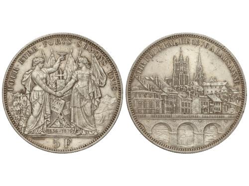 SUIZA. 5 Francs. 1876. FESTIVAL DE TIRO. LAUSANNE. 24,91 grs. AR. (Golpecitos). KM-X-S18. EBC-.