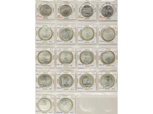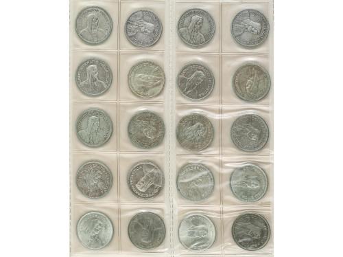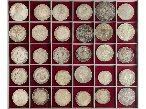 LOTES Y COLECCIONES EXTRANJERO. Lote 62 monedas de plata. La mayoria siglo XX. PAÍSES DE TODO EL MUNDO. AR. Resto final de colección, todas las monedas de plata. Casi todas diferentes. Aproximadamente la mitad tipo Duro. IMPRESCINDIBLE EXAMINAR. BC a EBC+.