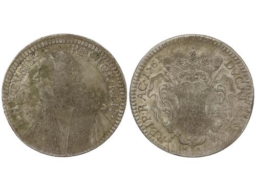 RAGUSA. Tallero. 1763. 28,22 grs. AR. (Rayas de ajuste en reverso). Pátina. Dav-1639; KM-18. (MBC-).