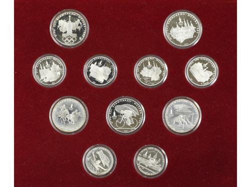 RUSIA. Set 28 monedas 5 (14) y 10 Rublos (14). 1977 a 1980. AR. Olimpiada Moscú´ 80. Colección completa. En estuche original. PROOF.