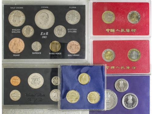 LOTES Y COLECCIONES EXTRANJERO. Lote 6 sets de presentación. 1965 a 1999. ARGENTINA, CHINA (2 de Macao), GRAN BRETAÑA, ESTADOS UNIDOS e INDIA. Al, AE, CuNi. IMPRESCINDIBLE EXAMINAR. FDC y SC.