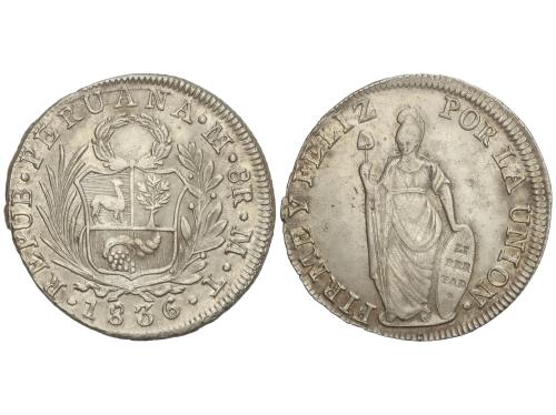 PERÚ. 8 Reales. 1836. LIMA. M.T. 26,82 grs. AR. (Leves rayitas en reverso). Restos de brillo. KM-142.3. EBC/MBC+.