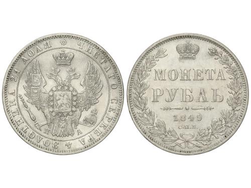 RUSIA. 1 Rouble. 1849. NICHOLAS I. SAINT PETERSBURG. 20,40 grs. AR. (Leves rayitas). C-168.1. EBC-.