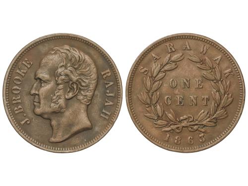 SARAWAK. 1 Cent. 1863. J BROOKE RAJAH. 9,45 grs. AE. Pátina. KM-3. EBC-.