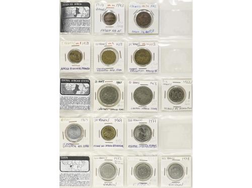 LOTES Y COLECCIONES EXTRANJERO. Lote 481 monedas. Siglo XIX-XX. DIFERENTES PAÍSES AFRICANOS. AR, AE, Cuni, Al, Latón. Guinea, Guinea Ecuatorial, Túnez, Libia, Gabón, África Occidental francesa, Camerún, Congo, Mali, Benin, Liberia, África británica Occidental, Nigeria. Diferentes módulos. Muchas diferentes. En álbum. IMPRESCINDIBLE EXAMINAR. BC+ a SC.
