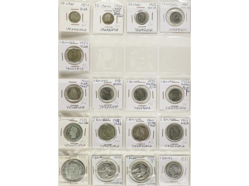 LOTES Y COLECCIONES EXTRANJERO. Lote 478 monedas. Siglo XIX-XX. ARGENTINA, CHILE, ISLAS FALKLAND, PARAGUAY, URUGUAY, VENEZUELA. AR, AE, Cuni, Br, Latón. Diferentes módulos. Muchas diferentes. En álbum. IMPRESCINDIBLE EXAMINAR. BC+ a SC.