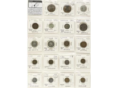 LOTES Y COLECCIONES EXTRANJERO. Lote 344 monedas. Siglo XIX-XX. NORUEGA, DINAMARCA, ISLANDIA, GROENLANDIA. AR, AE, Cuni, latón. Contiene moneda circulante y conmemorativa. Diferentes tamaños. En álbum. IMPRESCINDIBLE EXAMINAR. BC+ a SC.