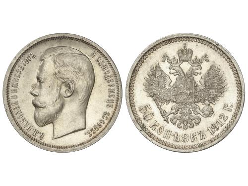 RUSIA. 50 Kopeks. 1912. NICHOLAS II. SAINT PETERSBURG. 10,01 grs. AR. Y-58.2. EBC.