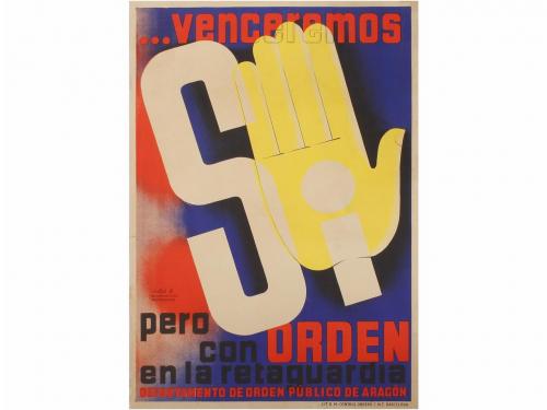 1937. CARTEL. (GUERRA CIVIL-REPÚBLICA). CLOTEL:. VENCEREMOS... SÍ, PERO CON ORDEN EN LA RETAGUARDIA. Litografía. 70 x 100 cm (27 x 39 in). Litografia. Algunas restauraciones peiféricas, A-.