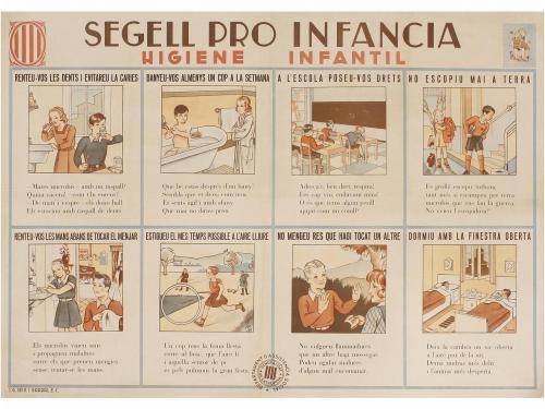 1935 ca. CARTEL. (GUERRA CIVIL-EDUCACIÓN). LIENES; HENRY:. SEGELL PRO INFANCIA. HIGIENE INFANTIL. Litografía. 84 x 115 cm (33 x 45 in). Entelado, A.