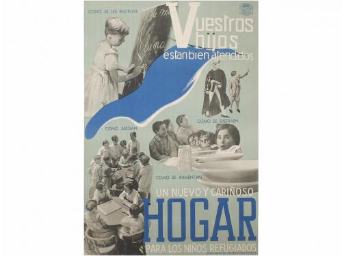 1938 ca. CARTEL. (GUERRA CIVIL Y REPÚBLICA). VUESTROS HIJOS ESTAN BIEN ATENDIDOS. UN NUEVO Y CARIÑOSO HOGAR PARA LOS NIÑOS REFUGIADOS. Fotocomposición. 96 x 66,5 cm (38 x 26 in). Entelado, A.