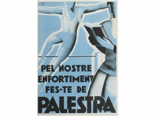 1936. CARTEL. (GUERRA CIVIL Y REPÚBLICA). MOLINE:. PEL NOSTRE ENFORTIMENT FES-TE DE PALESTRA. Litografía. 51 x 35,5 cm (20 x 14 in). A.