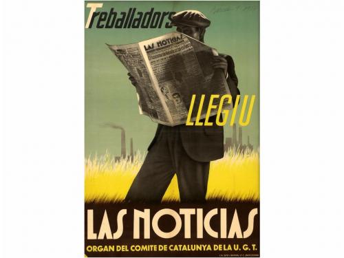1937. CARTEL. (GUERRA CIVIL Y REPÚBLICA). TREBALLADORS LLEGIU "LAS NOTICIAS. Fotomontaje. 100 x 70 cm (40 x 27 in). A.- .